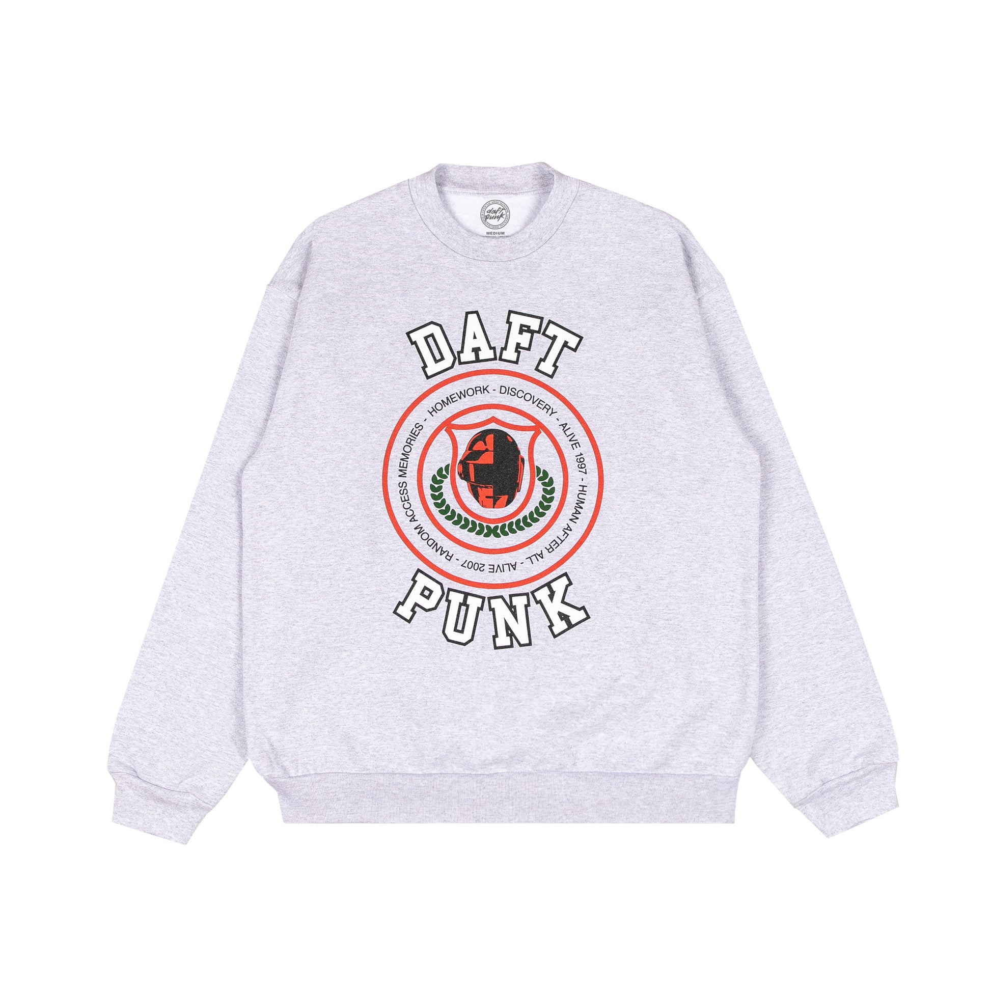 Inspired by Charles the Dog's crewneck from the 'Da Funk' music video, this pullover sweatshirt features the split helmet design graphic surrounded by the titled of each Daft Punk album. Made from premium 14oz heavyweight fleece with ribbed cuffs and hem