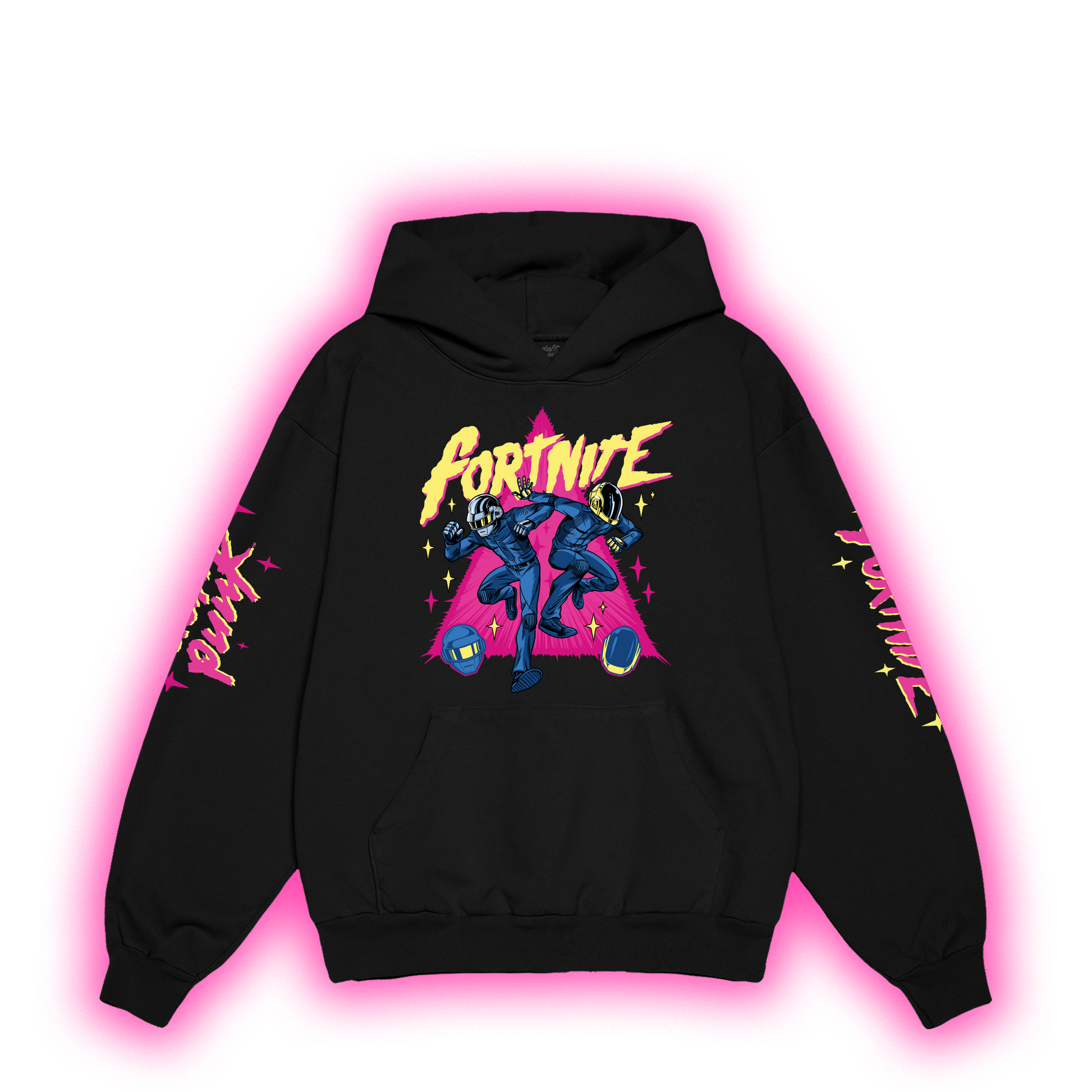 Fortnite x Daft Punk graphics printed on the front, back and sleeves of black, unisex hoodie. 100% cotton, 14 oz with a relaxed, unisex fit.
